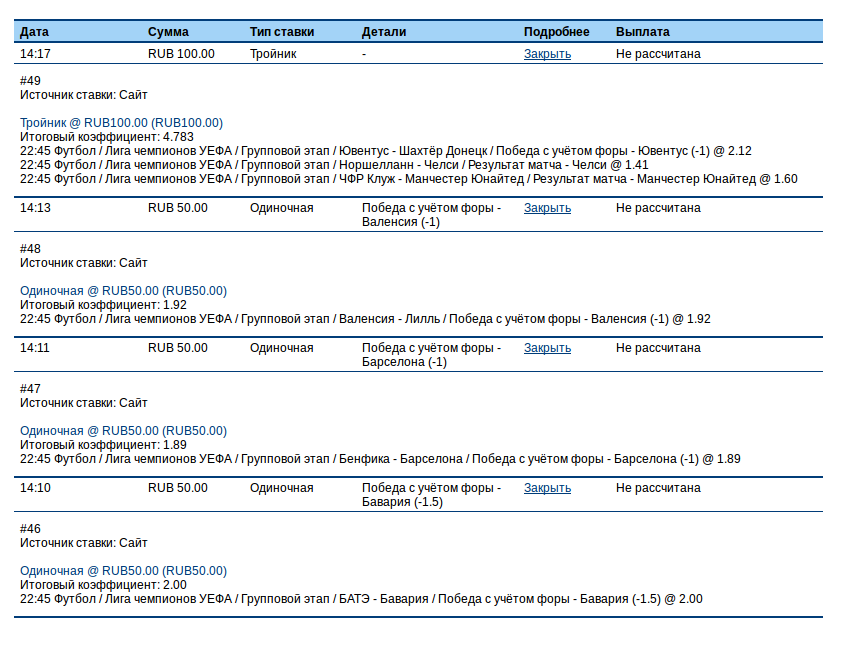 Раскидал 250 руб на марафоне на 4 ставки, вышло вот так: