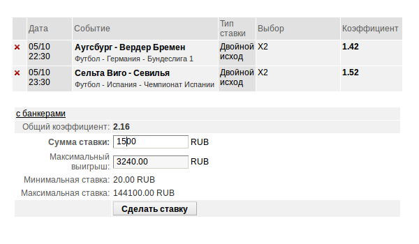 | Ставки на спорт | ||