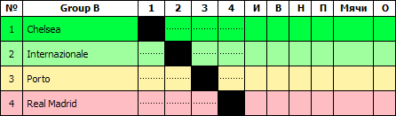 Турнир состоит из группового этапа, где играются с каждой командой по 2 матча, дома и на выезде, из группы выходит 2 команды занявшие первое и второе место! далее плей офф (1\4 и 1\2) также по два матча дома и в гостях! Плей офф (1\4) играют по такой схеме 1A-2D, 2A-1D, 1B-2C, 2B-1C, полуфинал победители соответствующих пар (1A-2D)-(2B-1C) и (2A-1D)-(1B-2C) В финале проводиться один матч на стадионе Сантьяго Бернабеу!!!